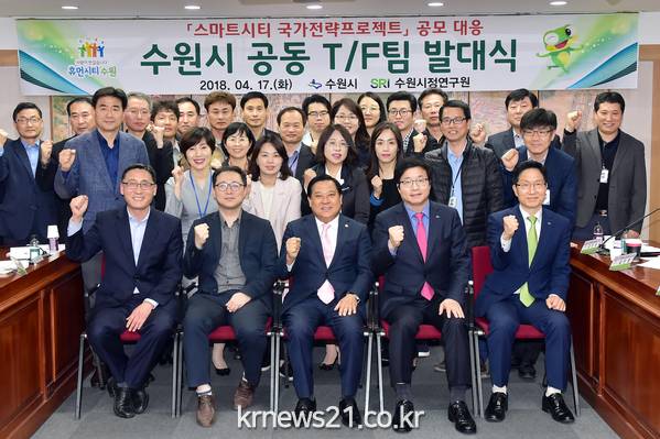 수원시는 17일 시청 상황실에서 시장 직속 ‘스마트시티 국가전략프로젝트 공모 대응 태스크포스 팀’ 발대식을 열고, 본격적인 공모 준비에 돌입했다.