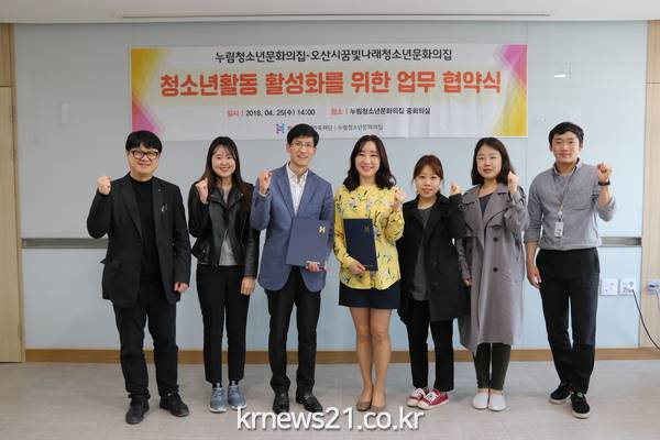 화성시여성가족재단 누림 청소년문화의집은 오산시 꿈빛나래 청소년문화의집과 4월 25일 오후 업무협약(MOU)을 체결하였다.