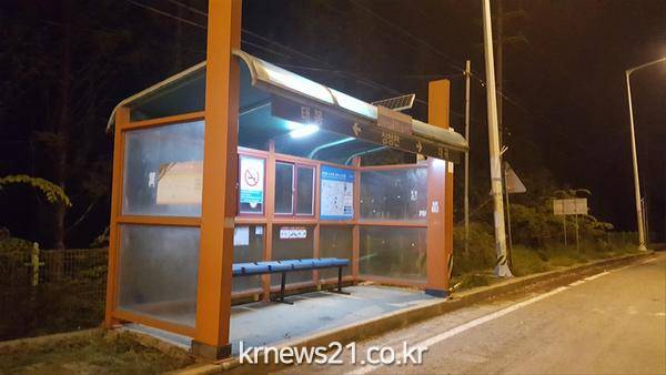 (뉴스21/장병기기자)=무안군(군수권한대행 장영식)은 버스승강장에 설치한 태양광 LED 조명장치가 야간에 버스승강장을 환하게 밝히고 있어 버스이용객들 에게 큰 호응을 받고 있다고 밝혔다.
