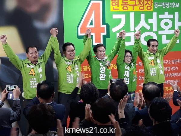 (뉴스21/장병기기자)=민주평화당 김성환 광주 동구청장 예비후보가 7일 동구 학동 인근에 위치한 선거사무소에서 개소식을 갖고 지지자들과 함께 선거 필승을 다짐했다.