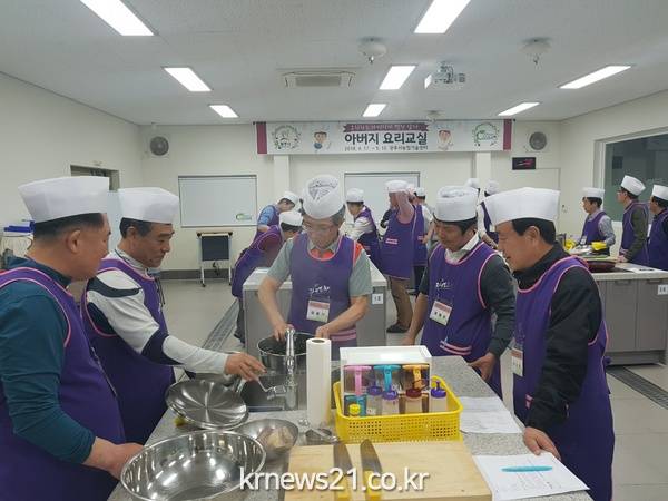 이번 교육은 요리에 익숙지 않은 아버지들에게 요리 자신감 향상에 도움을 주기위해 마련됐으며 누구나 쉽게 따라할 수 있는 국과 밑반찬 등 집 밥 메뉴 16가지를 선정, 요리 프로그램을 구성했다.
