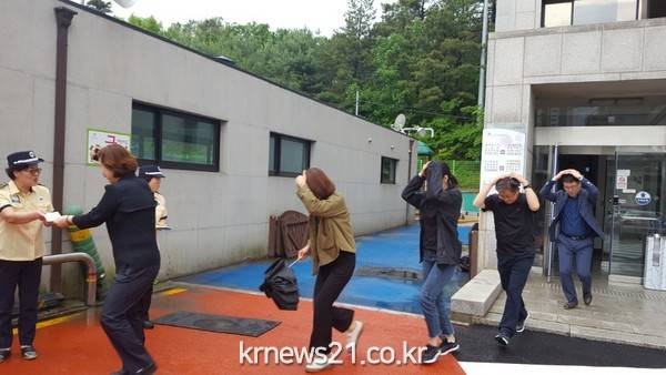 의정부시는 5월 16일 오후 2시부터 20분간 지진 발생 시 신속하게 대피하고 피해를 최소화 할 수 있도록 ‘국민참여 지진 대피훈련’을 실시했다.