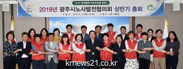 광주시는 지난 17일 시청 상황실에서 ‘2018년 광주시노사발전협의회 상반기 총회’를 개최했다.