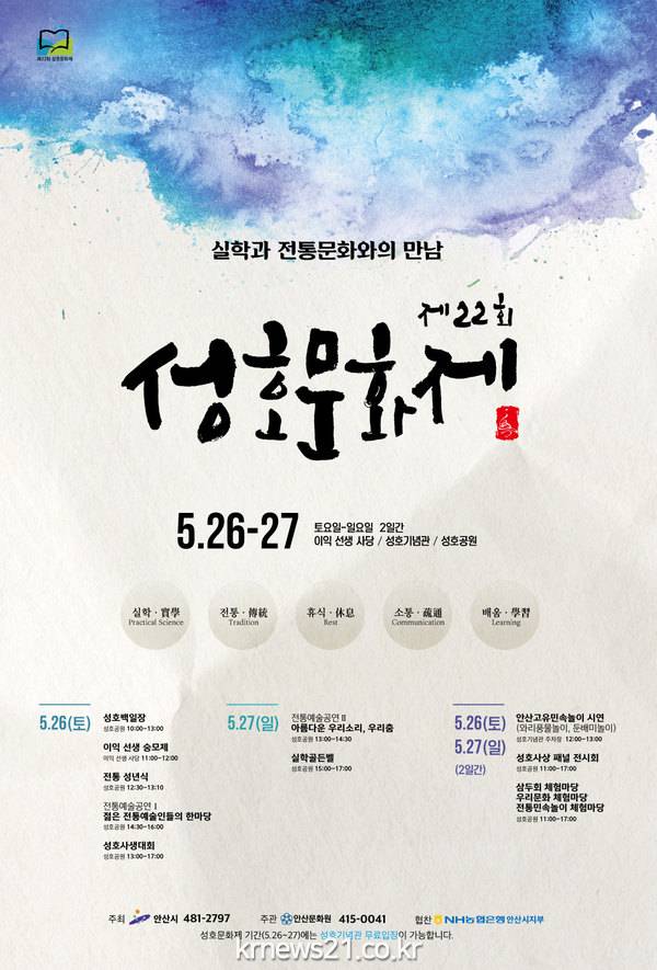 올해로 22회를 맞는 성호문화제가 26일부터 2일간 안산시 성호공원과 이익 선생 묘역에서 개최된다.