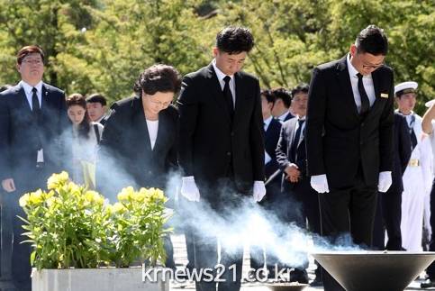 추도식은 국민의례, 노래를 찾는 사람들과 함께하는 '임을 위한 행진곡' 제창, 가수 이승철의 추모곡 '그런 사람 또 없습니다' 공연, 추도사, 추모 영상과 유족 인사말, '아침이슬' 추모공연, 참배 등 순서로 진행됐다.