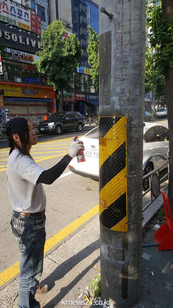 각 공공시설물에 붙은 전단, 테이프 잔여물 등을 깨끗이 제거한 뒤 도료를 바르는 방식으로 작업이 진행된다.