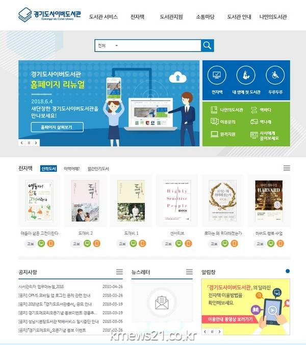 차종회 경기도 도서관정책과장은 “이번 홈페이지 개편을 통해 스마트폰으로 언제 어디서나 편리하게 전자책과 31개 시군의 공공도서관 서비스를 이용할 수 있을 것으로 기대한다.”며, “향후 독서인구 확산을 위한 다양한 서비스를 확대해 나가겠다.”고 밝혔다.