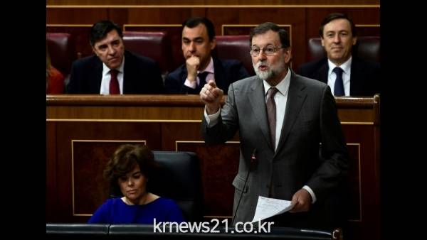 ▲ AFP / PIERRE-PHILIPPE MARCOU[제공자ⓒ 뉴스21통신. 무단전재-재배포 금지.]집권당의 부패 스캔들로 궁지에 몰린 마리아노 라호이 스페인 총리가 오늘(1일) 의회로부터 불신임 당해 퇴진할 것으로 보인다. 국민당(PP) 정부에 대한 불신임안을 하원에 제출한 사회당은 하원 전체 의석 350표 중 과반인 180표의 지지를 확보한 것으로 알려졌다. 이번 사태는 최근 법원이 불법 정치자금 모금죄로 국민당 소속 전현직 관료 29명에게 유죄판결을 내리면서 비롯됐다. 사회당 등 야당들은 이번 사건을 스페인 역사상 최대 부패 스캔들로 규정하고 라호이 총리에게 퇴진을 요구해왔다.