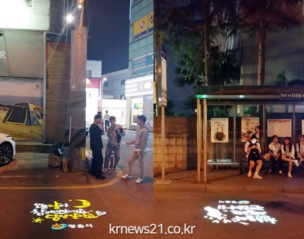 뿐만 아니라 이미지를 빛으로 투사한 후 바닥이나 벽면에 투영하는 기법인 그림자 조명은 안전의식 고취와 힐링 문구 등을 표출해 시민과 관광객들에게 따뜻한 위안을 전함은 물론 색다른 볼거리도 제공하고 있다.