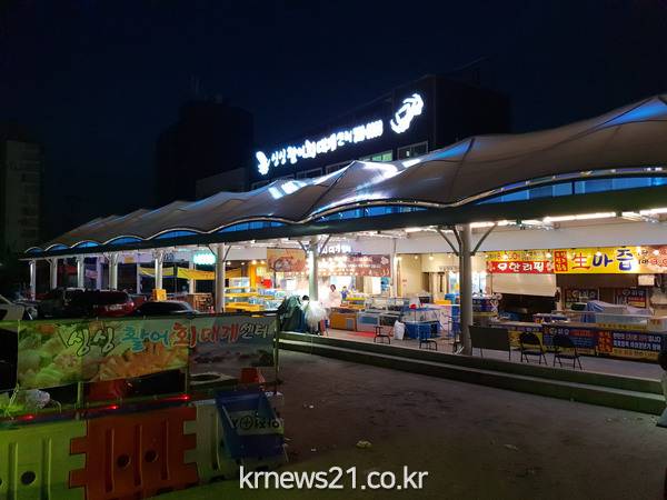 모란가축시장에서 대게, 회, 삼계탕 등을 파는 음식점 등이 파라솔, 의자 등을 내놓고 옥외 영업을 할 수 있게 비, 바람, 햇볕을 가려준다.