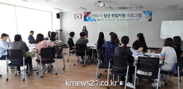 △지난 4일 여수시 공공근로사업 참여 청년들이 평생학습관에서 열린 청년 취업지원 프로그램에 참여해 취업정보를 듣고 있다.