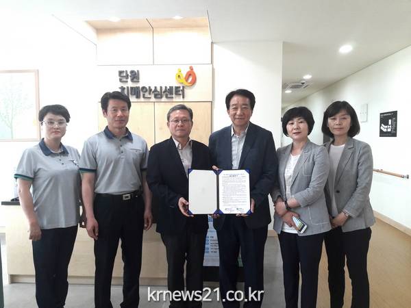 안산시 단원보건소 치매안심센터(소장 이건재)와 안산운전면허시험장(장장 황수일)은 지난 5일 단원치매안심센터에서 치매·고령운전자 운전면허 컨설팅과 치매관리사업 지원을 위한 업무협약을 체결했다.