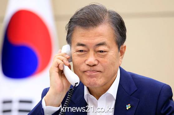 싱가포르 북미정상회담을 하루 앞둔 11일 문재인 대통령은 오후 4시 30분부터 5시 10분까지 40분 동안 트럼프 미국 대통령과 전화로 대화를 나눴다고 김의겸 청와대 대변인이 브리핑을 통해 밝혔다.