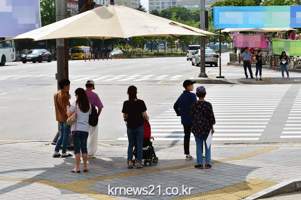 올 여름 수원시내 교통섬, 횡단보도 주변 등 108곳에 한낮 뜨거운 햇빛을 잠시 피할 수 있는 그늘막이 펼쳐진다.