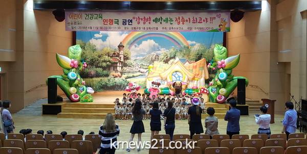 안산시 상록수보건소(소장 박건희)는 지난 11일 상록구청 상록시민 홀에서 관내 5세~7세 어린이 200명을 대상으로 어린이 예방접종 인형극 ‘감염병! 예방 접종이 최고야!’공연을 개최했다.