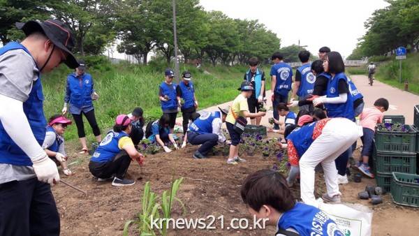 이날 참가자들은 무더운 날씨에도 불구하고 시민들의 산책코스로 사랑을 받고 있는 화정천 산책길에 아름다운 경관을 제공하기 위해 야생화 3,200본을 심으며 구슬땀을 흘렸다.