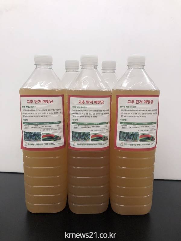 광주시 농업기술센터(소장 박수복)는 관내 고추농가의 미생물 활용을 통한 경쟁력 향상을 위해 고추 탄저병 예방 유용미생물을 공급하고 있다고 18일 밝혔다.