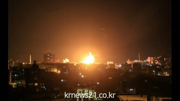 ▲ AFP / ABED ABU RYASH[제공자ⓒ 뉴스21통신. 무단전재-재배포 금지.]이스라엘군 대변인은 20일(현지시간) 트위터를 통해 "이스라엘 공군 전투기들이 오늘 새벽 가자지구의 하마스 시설을 타격했다"며 이번 공습은 이스라엘을 향해 날아온 로켓포에 대한 대응이라고 말했다.