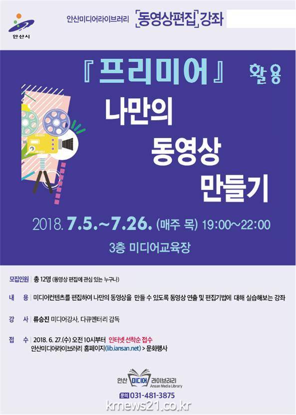 미디어에 관심 있는 시민은 누구나 참여할 수 있으며, 접수는 오는 27일 오전 10시부터 「안산미디어라이브러리 홈페이지(http://lib.iansan.net) - 문화행사」에서 선착순(각각 15명, 12명)으로 접수한다.
