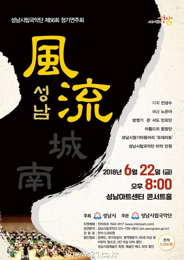 성남시립 국악단은 돌아오는 6월 22일 (금) 오후 8시 성남아트센터 콘서트홀에서 제56회 정기연주회 ‘성남풍류’를 공연한다.