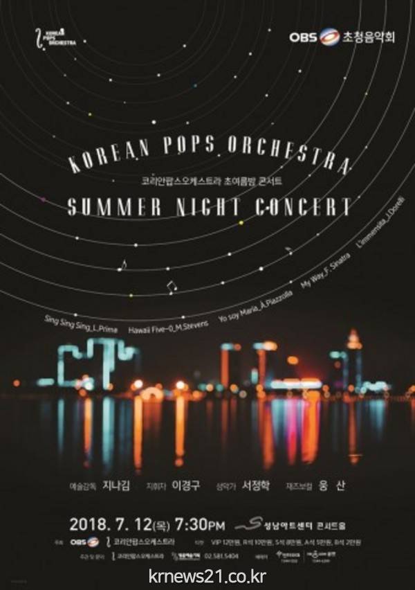 ▲ 코리안팝스오케스트라 가을 특별 시즌 콘서트코리안팝스오케스트라 2018 시원한 여름 시즌 공연이 7월 12일 성남아트센터 콘서트홀에서 열린다.