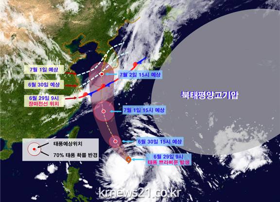 기상청은 7월 2일 제주도와 전라남도가 태풍의 직접 영향권에 들어가고, 태풍의 영향