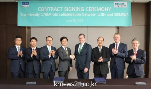 독일 지멘스는 29일 서울 플라자호텔에서 일진전기와 친환경 가스절연 개폐장치(Gas-insulated Switchgear: GIS) 개발에 대한 기술협약을 체결했다고 밝혔다.