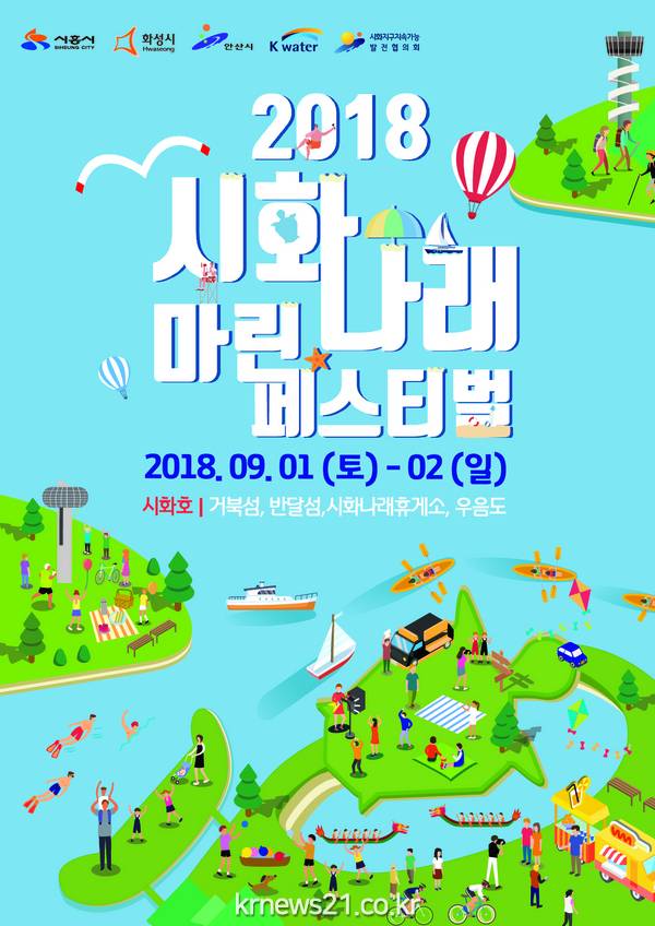 올해로 4년째를 맞는 ‘2018 시화나래 마린페스티벌’이 시흥시, 안산시, 화성시, K-water, 시화지구지속가능발전협의회 공동 주최로 9월 1일부터 2일까지 시화호 일원에서 개최된다.