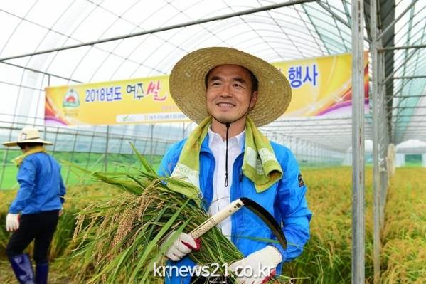 '사람중심 행복여주’란 슬로건으로 힘차게 출발한 민선7기 경기 여주시가 첫 공식행사로 '대한민국 유일의 쌀 산업특구' 명성에 걸맞게 여주시 우만동 소재 홍기완 농가의 논에서 ‘전국 최초로 여주쌀 첫 벼베기 행사’를 가졌다고 9일 밝혔다.
