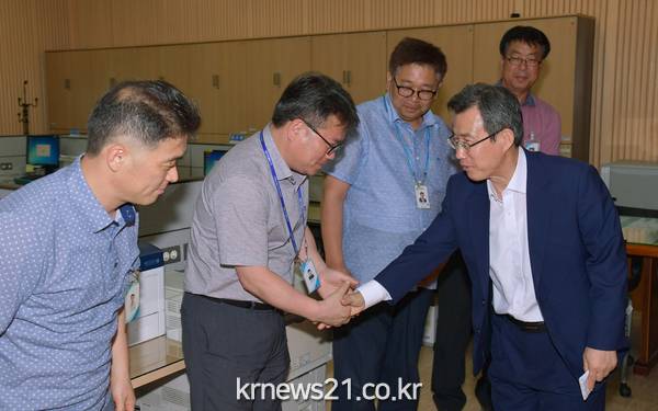 고 부시장은 세정과를 시작으로 46개 부서 공무원들과 일일이 인사를 나누고 격려의 말을 전하기도 했다.