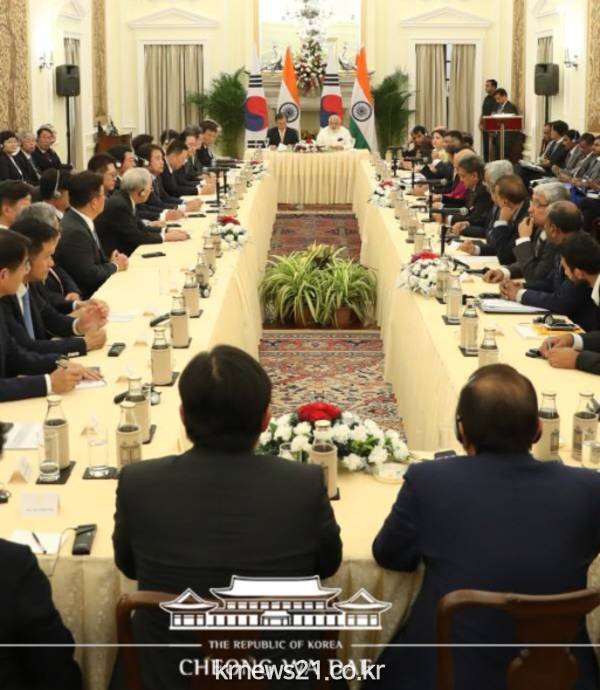 ▲ (사진=청와대)인도를 국빈방문 중인 문재인 대통령이 쌍용자동차 대주주인 인도 마힌드라그룹 회장에게 쌍용차 복직문제 해결을 요청했다.