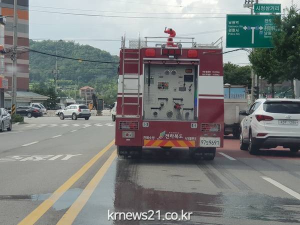 ▲ 시내 주요도로 살수차 지원 사진
