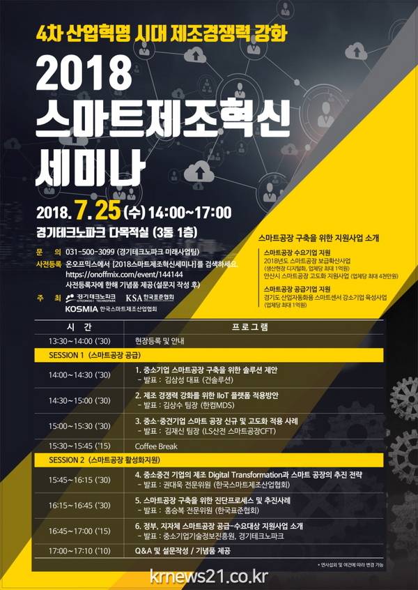 이와 관련하여 경기도는 7월 25일 14시에 경기테크노파크 다목적실(3동 1층)에서 개최되는 2018 스마트 제조혁신세미나에서 사업설명회를 열고 자세한 지원 계획을 설명할 예정이다.