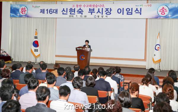 이임식은 부시장 공적 소개에 이어 공로패와 재직기념패 전달, 광양시장의 환송사, 신현숙 부시장의 이임사 순으로 진행됐다.