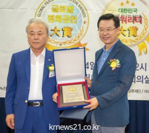글로벌평화공헌대상은 대한민국 사회발전과 평화통일 등을 위해 노력하는 각계각층 리더에게 주어지는 상이다. 대한방송연합뉴스, 국회출입기자클럽이 주관한다.