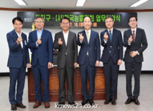 협약식은 16일 오후 5시 광진구청 기획상황실에서 김선갑 구청장과 최권석 대표 등 양측 관계자 총 6명이 참석한 가운데 진행됐다.