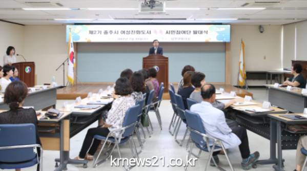 ▲ (사진=충주시)18일 충북 충주시는 2기 여성친화도시 톡톡 시민참여단이 발대식을 열고 본격 활동을 시작했다.