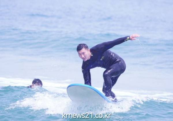 ▲ (사진=강릉시)강릉시는 해양레저 서핑 인구 증가에 따라 금진해변을 서핑 랜드마크로 조성하기 위하여 강릉시 서핑협회와 협력하여 서핑 입문자 대상의 ‘금진서프스쿨’ 프로모션 상품을 7월부터 10월까지 월 1회씩 총 4회 운영한다.