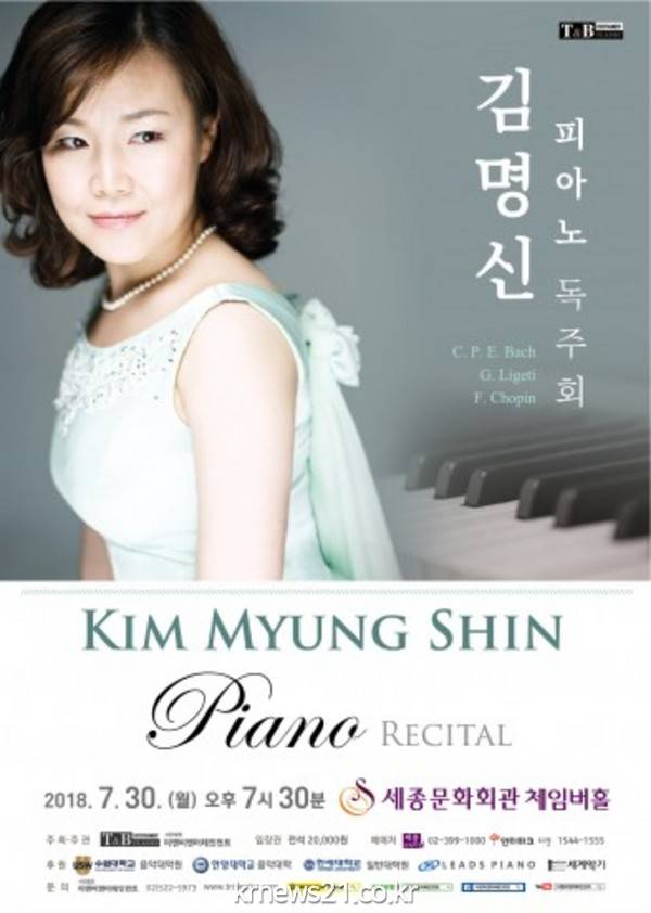 ▲ 7월 30일에 세종문화회관 체임버홀 개최되는 김명신 피아노 독주회 포스터티앤비엔터테인먼트(이하 티앤비)가 세상과 소통하는 음악을 들려주는 피아니스트 김명신의 한여름 밤 아름다운 추억을 만들고 시원한 청량감을 느낄 수 있는 독주회 프로그램을 30일 세종문화회관 체임버홀에서 개최한다고 밝혔다.