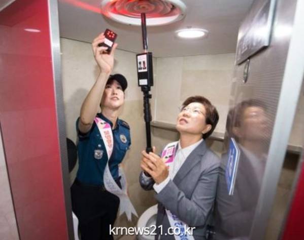 ▲ (사진=은평구청)김미경 은평구청장은 불법촬영 근절에 대한 의지를 보여주고, 불법촬영 범죄자들에게 '불법촬영은 장난이 아닌 범죄'라는 메시지를 던지기 위해 직접 공중화장실 불법촬영장비 점검에 나섰다.