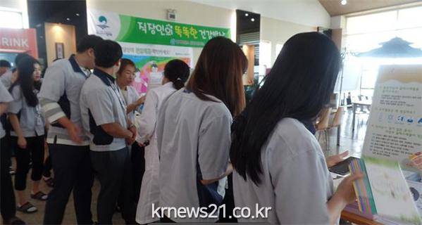 이번 건강 캠페인은 식품 및 모형을 활용한 저염·저당·저지방 식이요법을 소개하고 개인별 식생활을 체크해보는 시간을 가져 교육 효과를 높였다.