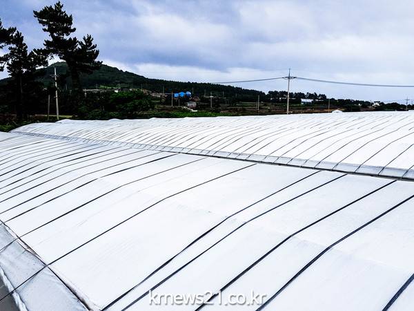 ▲ (사진=제주특별자치도)빈발하고 있는 폭염 등 이상고온에 의한 시설채소 개화, 수정불량, 광합성 저하 등 피해 예방을 위해 비용 부담 적은 친환경 차광도포제 이용 안정생산 기술보급에 나서고 있다.