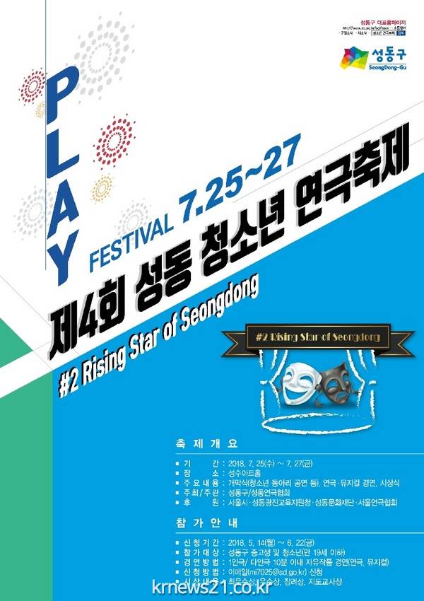 성동구가 주최하고 성동연극협회가 주관하며 서울특별시성동광진교육지원청, 서울연극협회 및 성동문화재단이 후원하는 제4회 성동 청소년 연극제는 2017년 전국청소년연극제 대상을 받은 영등포여고와 서울종합예술실용학교 왁킹팀의 개막 축하공연으로 연극제 시작과 함께 활기를 불어 넣을 예정이다.