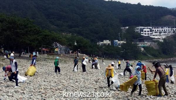 마을 이장과 새마을지도자, 읍사무소 공무원 등 90여 명은 조류의 영향으로 피서지에 밀려온 해양쓰레기를 수거하고 잡초 제거, 방역소독 작업도 했다.