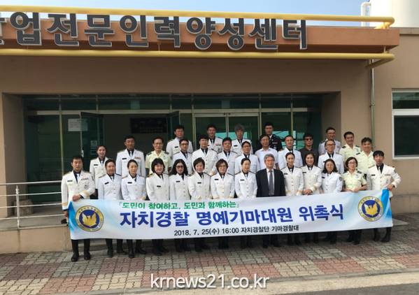 ▲ (사진=제주특별자치도청)제주특별자치도 자치경찰단(단장 나승권)에서는 지난 7. 25. 기마경찰대에서 ‘명예기마대원 위촉식’을 개최하였습니다.