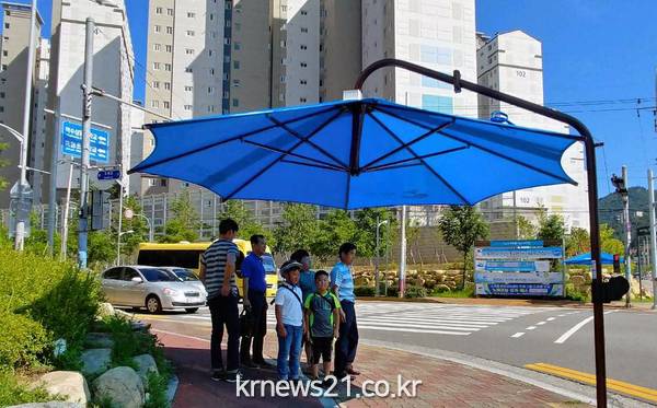 폭염이 장기화하는 조짐을 보이자 시는 횡단보도와 교통섬 등에 설치한 ‘그늘섬’을 80여 곳까지