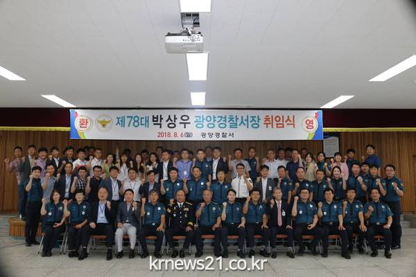8. 6.(월) 10:00경 경찰서 대회의실에서 직원 100여명이 참석한 가운데 제78대 박상우 광양경찰서장 취임식을 가졌다.