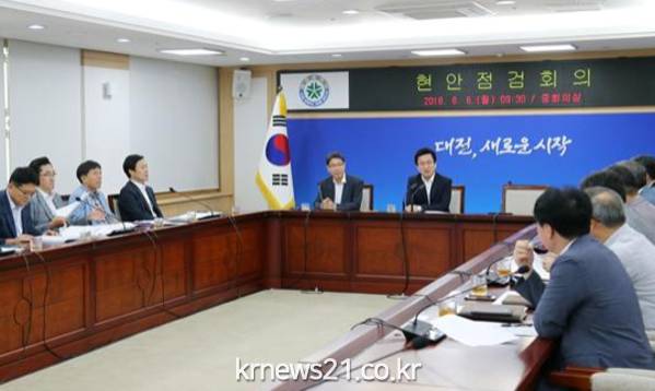 ▲ (사진=대전광역시청)허태정 대전광역시장이 휴가에서 복귀하자마자 간부공무원들과 민생안전 대책회의를 갖고 시민안전관리에 나섰다.