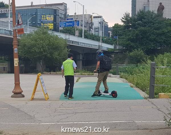 성남시는 탄천 자전거도로 50.8㎞ 구간에서 전동 휠, 전동 킥보드 등의 전동식 바퀴가 달린 이동수단을 타는 행위를 전면 금지한다. 위반 땐 범칙금 4만원을 물어야 한다.