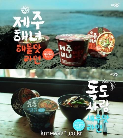 GS리테일이 운영하는 GS25와 GS수퍼마켓은 ‘제주특별자치도해녀협회(이하 제주해녀협회)‘와 손잡고 만든 ‘유어스 제주해녀 해물맛 라면(이하 해녀 라면)'과 독도 사랑을 실천하는 ‘유어스 독도사랑 새우맛 라면(이하 독도 라면)’ 판매를 시작한다고 8일 밝혔다.
